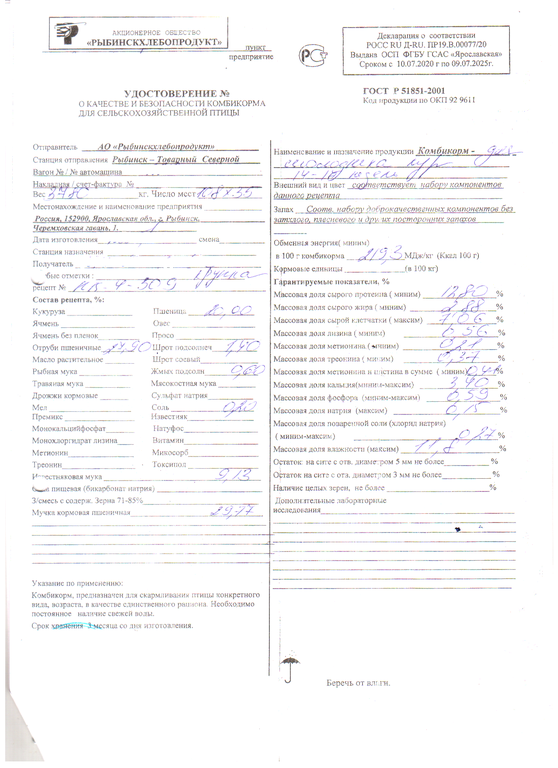 Комбикорм ПК-1 для кур-несушек (Рыбинск) / 35кг 760 ₽ Комбикорм производства АО Рыбинский КХП для кур-несушек. Фасовка по 35кг. Комбикорм производства АО Рыбинский КХП для кур-несушек. Фасовка по 35кг. Описание Комментарии 0 Описание Комбикорм производства АО Рыбинский КХП для кур-несушек. Фасовка по 35кг. Полнорационный комбикорм для кур-несушек от 48 недель. Комментарии 0 Добавить комментарий