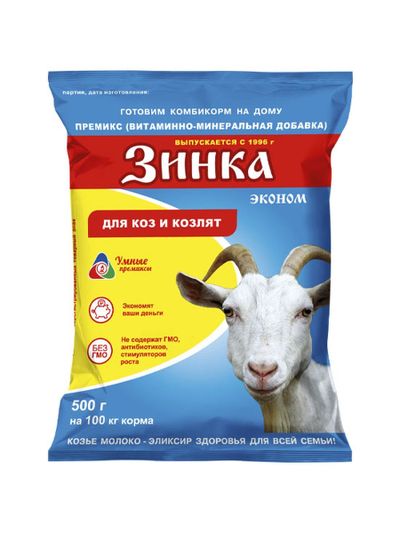 Витаминно-минеральная добавка в виде премикса для дойных, холостых, сукозных коз, козлов, молодняка коз в возрасте от 6 до 40 недель и содержит все необходимые витамины и минералы, которая: